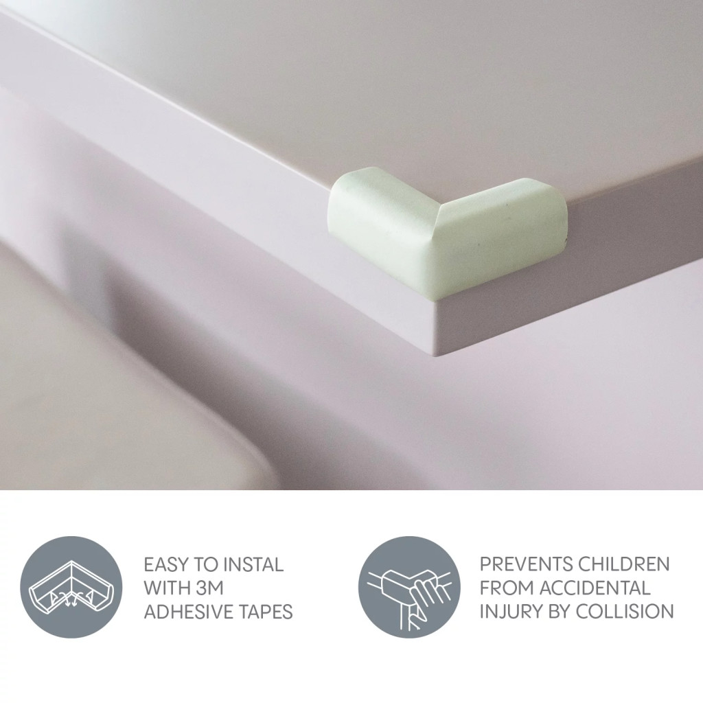 Óvja gyermekét habszivacs sarokvédőnkkel, amely minimalizálja a sérülés kockázatát, amikor asztalok, ágyak, szekrények és egyéb bútorok éles sarkaihoz ütődik.