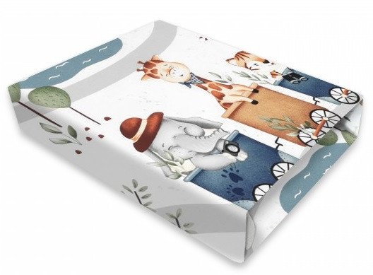 Baby Shop pamut,gumis lepedő 80*160 cm - Állatok a vonaton