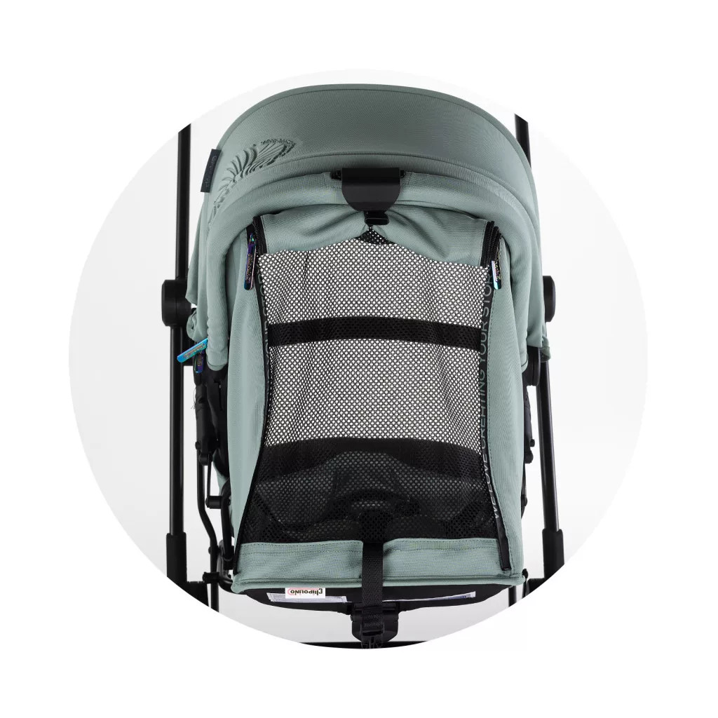 Háttámláján és kupoláján kicipzározható szellőző nyílás biztosítja a mgfelelő levegő áramlását
