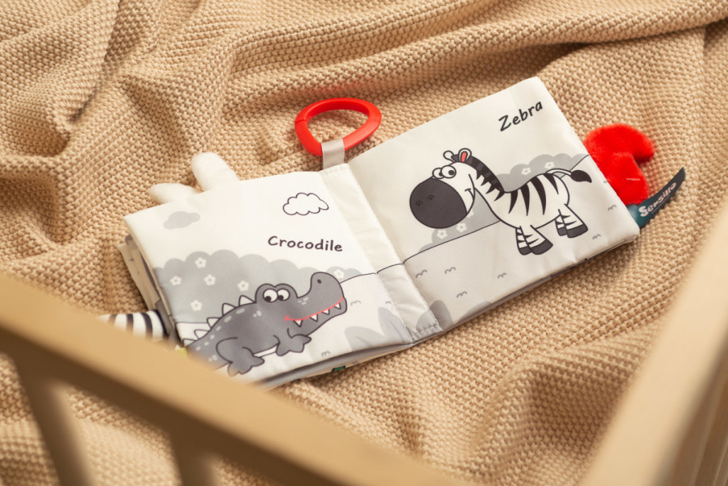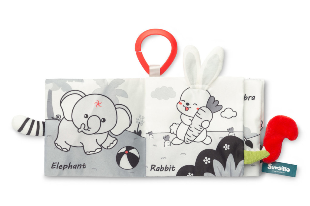 A könyv lehetővé teszi a babának, hogy új készségeket sajátítson el, a fogás gyakorlásától kezdve az íny serkentéséig a rágókán lévő dudorok segítségével, egészen a számok, különböző felületek és formák megismeréséig. Az élénk, kontrasztszínek révén fejleszti a látást, a képzelőerőt és a koncentrálóképességet.