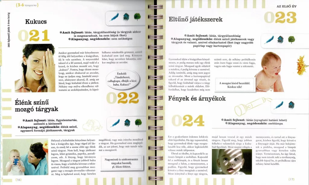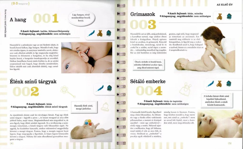 A kisbabák úgy szívják magukba a tudást, mint szivacs a vizet. De egyáltalán nem mindegy, hogy mit tanulnak. Ez a könyv olyan trükköket és játékokat mutat be, amelyekkel a szülők sokat tehetnek a gyermekük fejlesztéséért. A babák játékok segítségével fejezik ki érzelmeiket, gondolataikat, vágyaikat vagy szükségleteiket, és fejlesztik a képességeiket. Ebben a könyvben az első három év fejlesztését elősegítő játékokat találhatunk. Mindegyik játéknál megmutatjuk, milyen területet fejleszt, valamint hogy milyen helyszínen érdemes gyakorolni. Néhány egyszerű trükkel sokkal teljesebben élhetjük meg ennek a rövid korszaknak az örömeit.