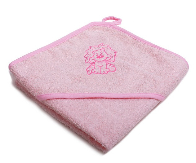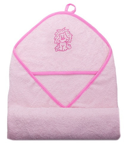 Vaganza hímzett fürdőlepedő, fürdetőkesztyűvel 110*110 cm - rózsaszín oroszlán