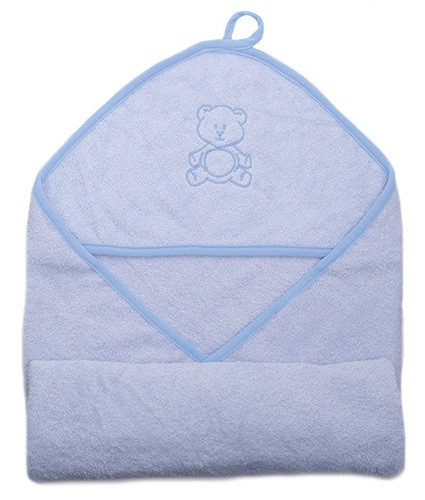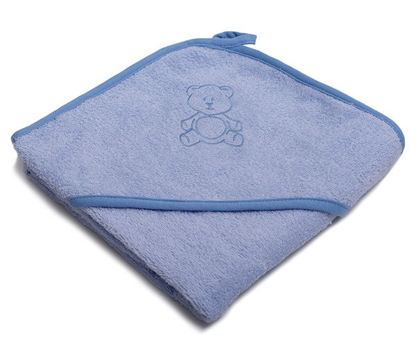 Vaganza hímzett fürdőlepedő, fürdetőkesztyűvel 110*110 cm - kék maci