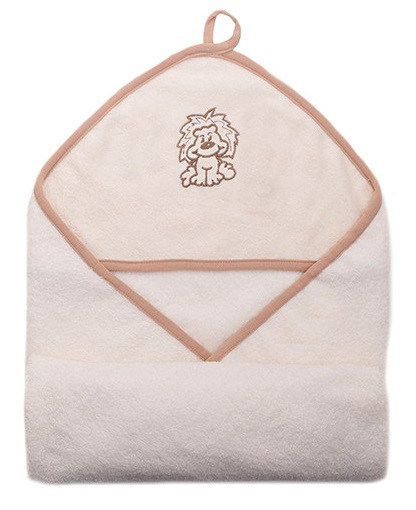 Vaganza hímzett fürdőlepedő, fürdetőkesztyűvel 110*110 cm - drapp oroszlán