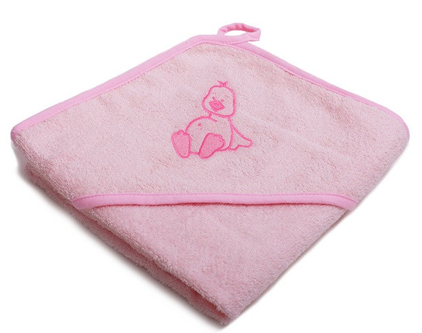 Vaganza hímzett fürdőlepedő, fürdetőkesztyűvel 110*110 cm - rózsaszín kacsa