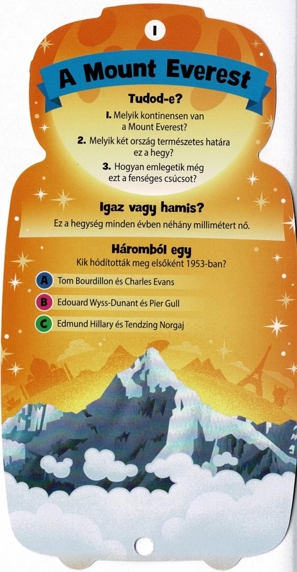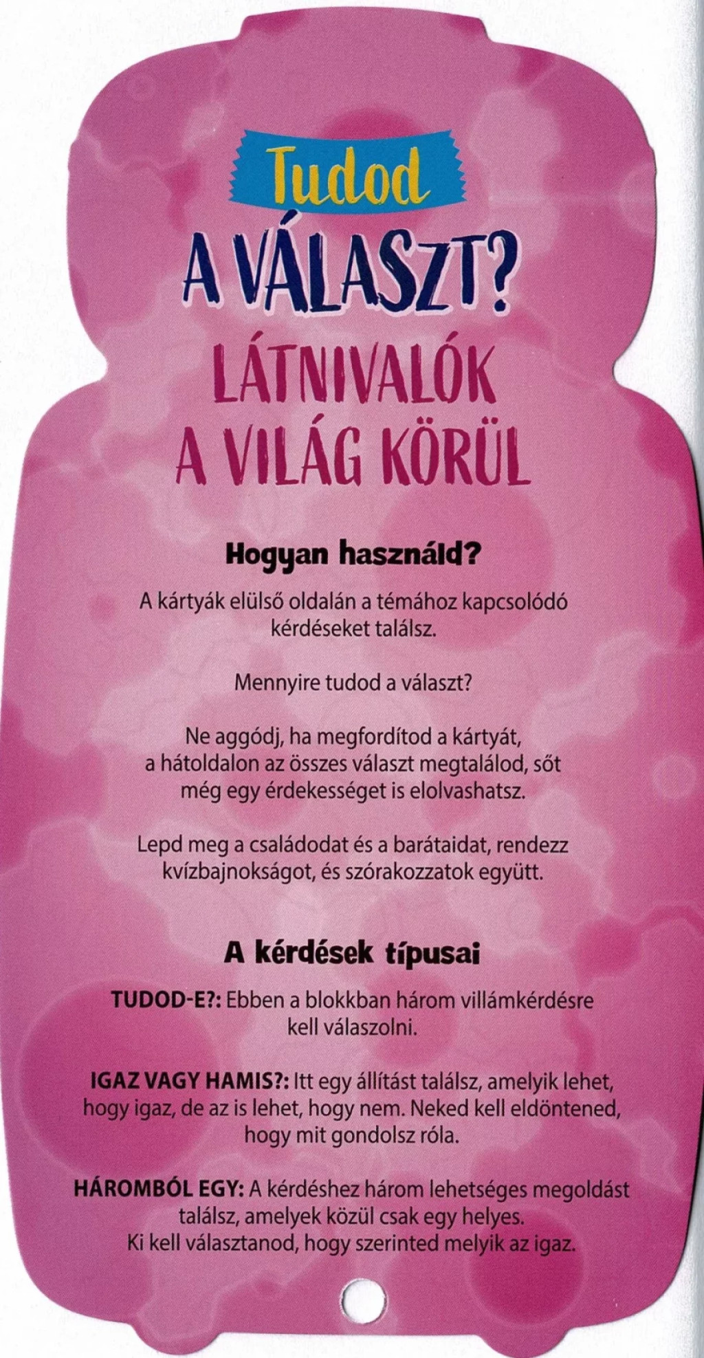 Minden kártyán három kérdéstípussal találkozhatunk:
