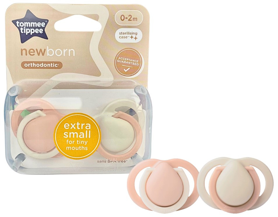 Tommee Tippee Newborn újszülött játszócumi 0-2 hó 2 db - pink/bézs