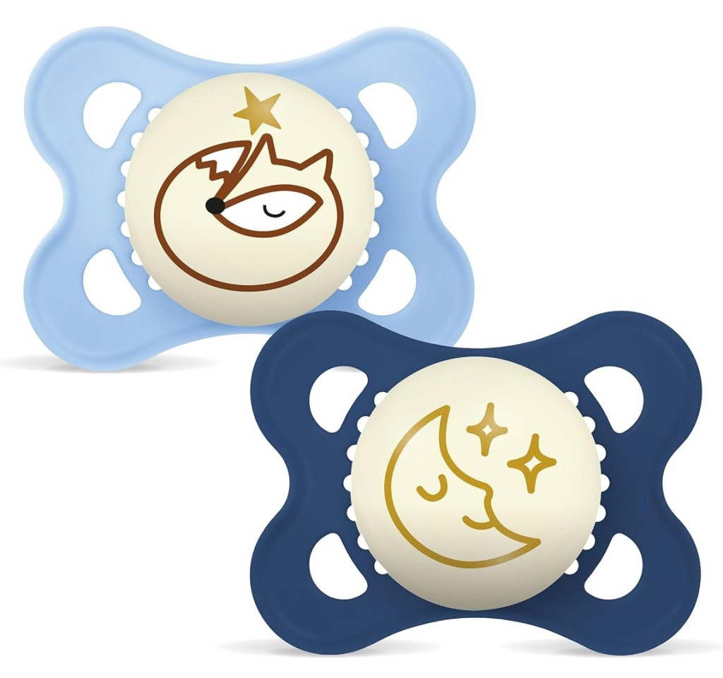 Sötétben világító cumi – könnyű megtalálni, mert a gombja világít A nagyméretű levegőnyílásoknak és az egyedülálló MAM belső mélyedéseknek köszönhetően kíméli a bőrt