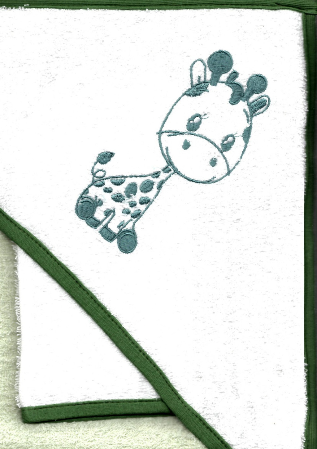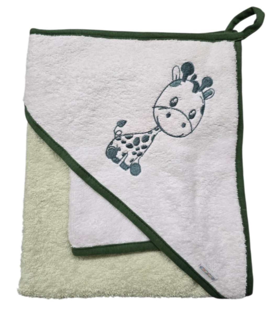 Babastar hímzett fürdőlepedő, fürdetőkesztyűvel 80*80 cm - zsiráf fehér/zöld
