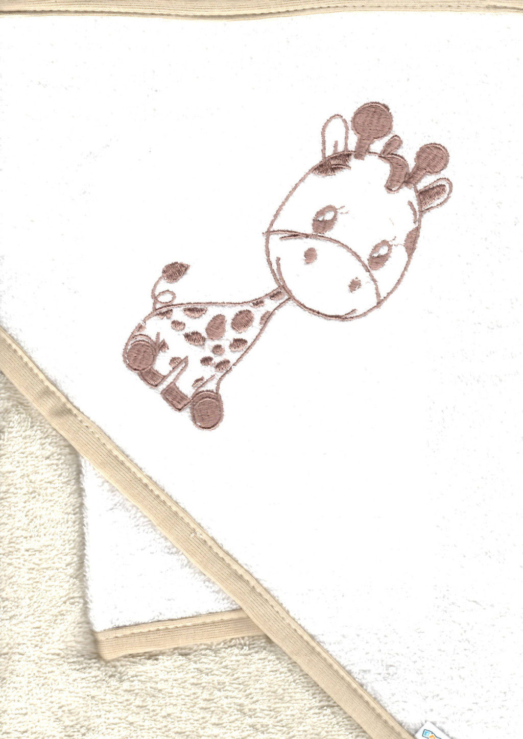 Babastar hímzett fürdőlepedő, fürdetőkesztyűvel 80*80 cm - zsiráf fehér/natúr