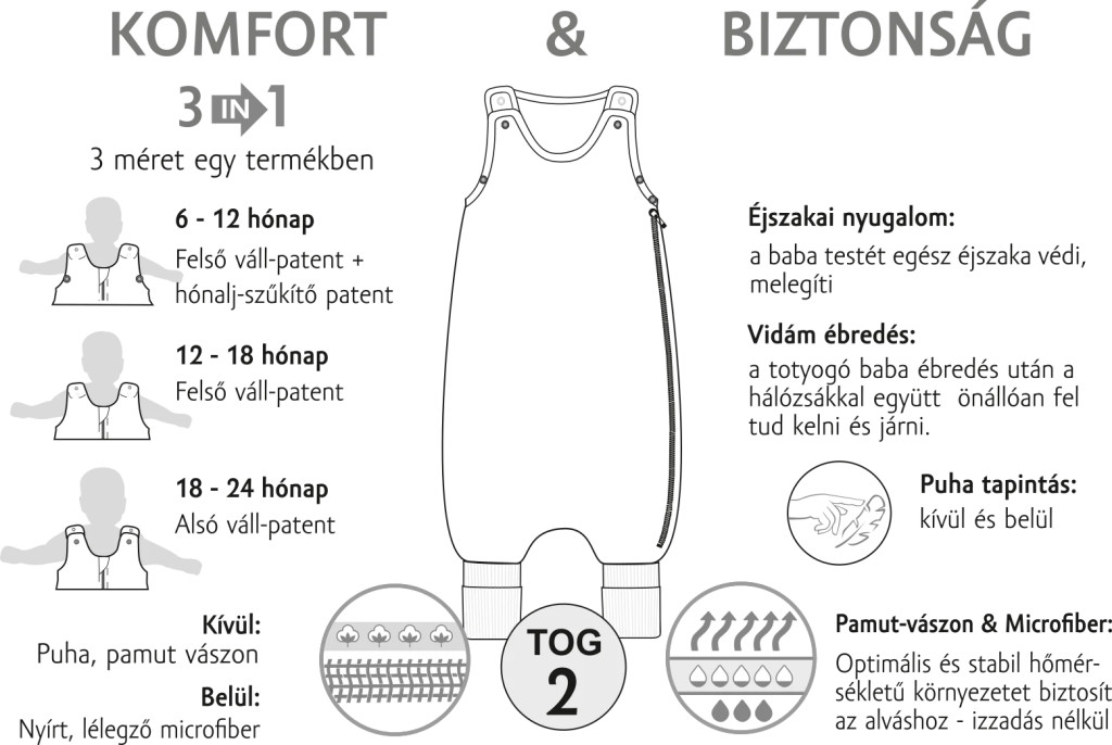 - Vidám ébredés: a totyogó baba ébredés után a hálózsákkal együtt önállóan fel tud kelni és járni