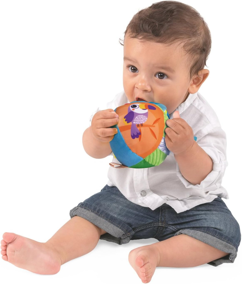 Csörgőket tartalmaz, amelyek halk hangokat adnak ki, amikor a baba gurítja vagy rázogatja a labdát.