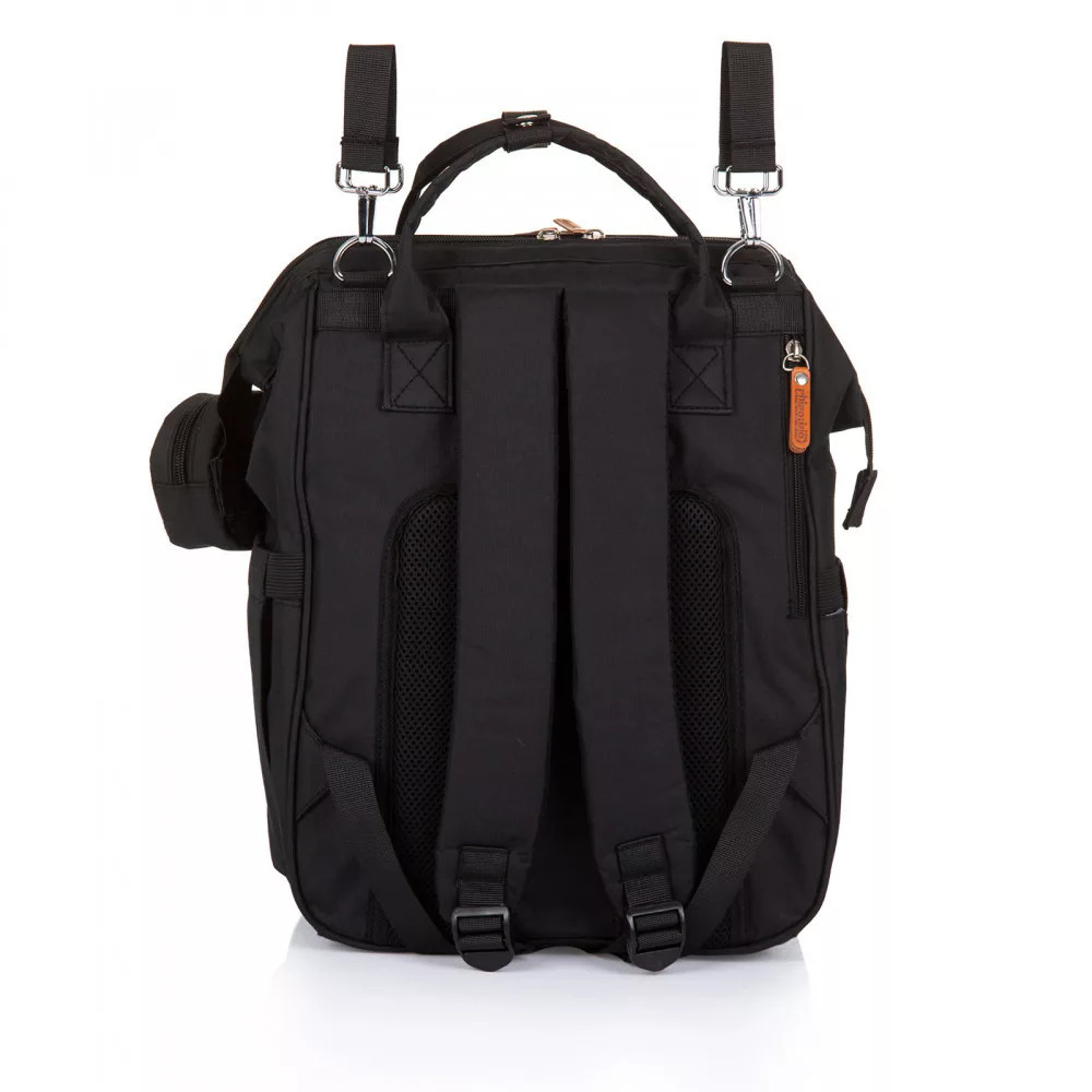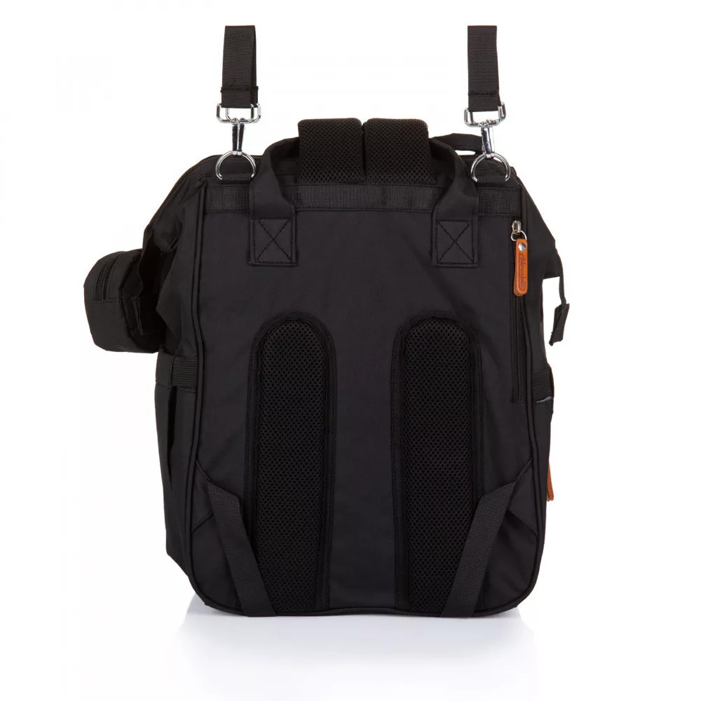 - Hátizsák, amely egy pelenkázótáska is egyben, könnyen és kényelmesen használható, a babakocsik tolókarjára univerzálisan rögzíthető.