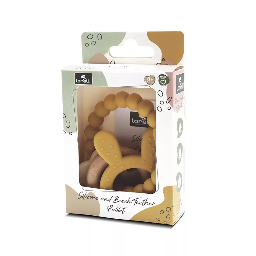 Lorelli Nyuszi szilikon és bükkfa rágóka - Yellow