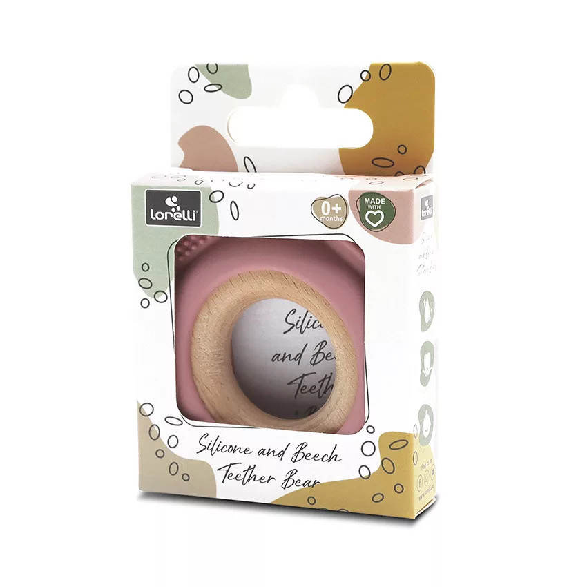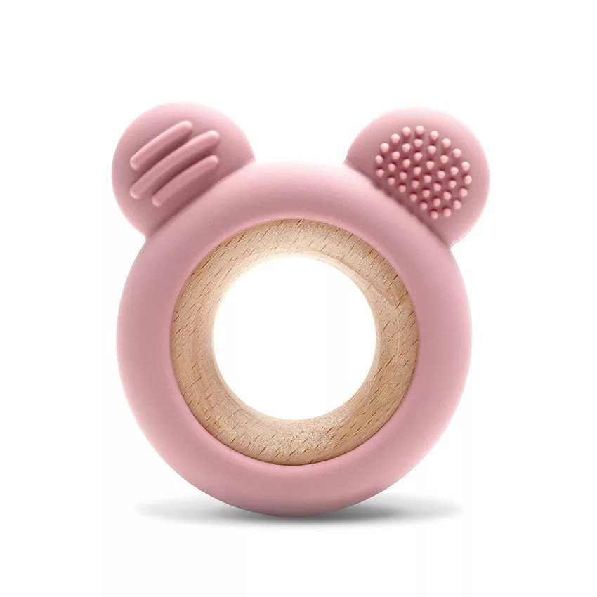 Macifej formájú rágóka, amely természetes szilikonból és bükkfából készült.
