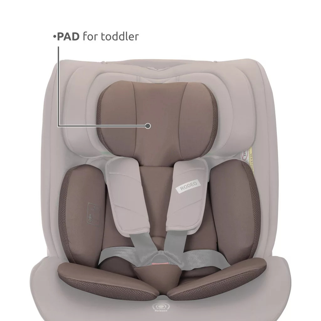 - A puha mellkast védő párnák a biztonsági övön kényelmesen illeszkednek a gyermek testéhez. Segítik a gyermek mozgásának csökkentését ütközés esetén. A párnák könnyen levehetők és moshatóak.