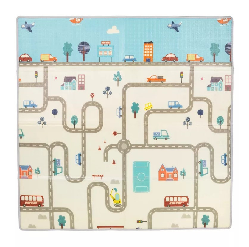- Stílusos városi mintával ellátott: szórakoztató utak, autók és épületek a kis felfedezőknek