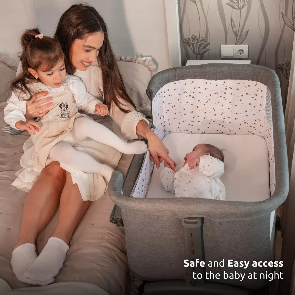 - Ágykerethez külön rögzítő pánttal fixálható, ha a szülői ágy kialakítása megengedi, így alvás közben nem tudod eltolni a bölcsőt.