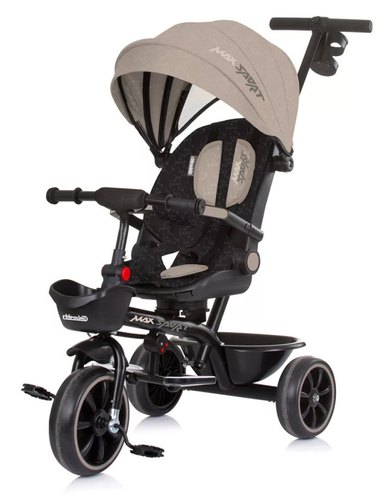 A kupola, a szülő kormány eltávolítható , így a tricikli biciklivé válik a nagyobb gyermekek számára;
