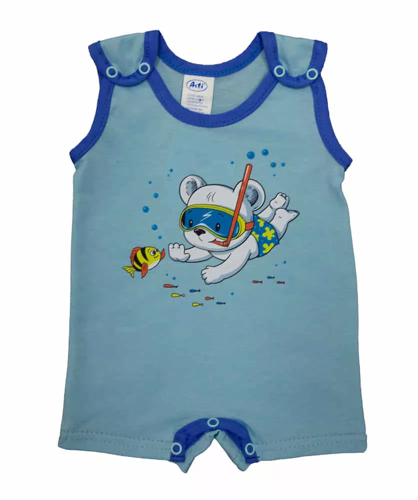 Ujjatlan kisfiú napozó pamut anyagból Búvár maci mintával (80)