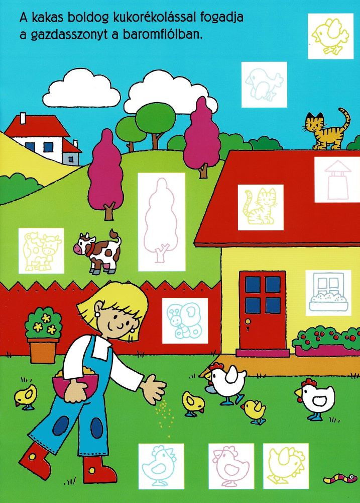 Ismerd meg a tanyát! Ragaszd be a 96 matricát, így lesz teljes a kép, és végigkövetheted a falusi élet legjellemzőbb jeleneteit.