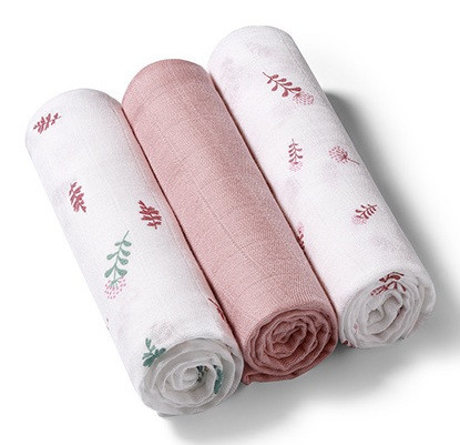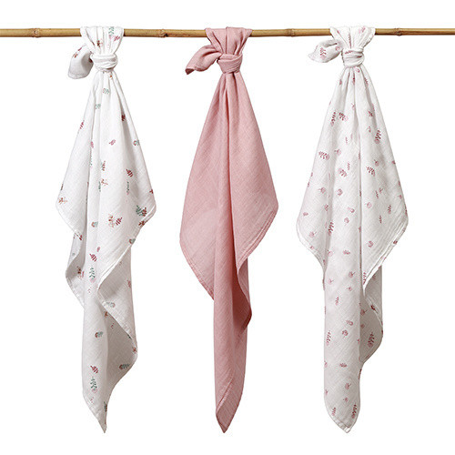 BabyOno 3 db-os színes,mintás bambusz textilpelenka - rózsaszín