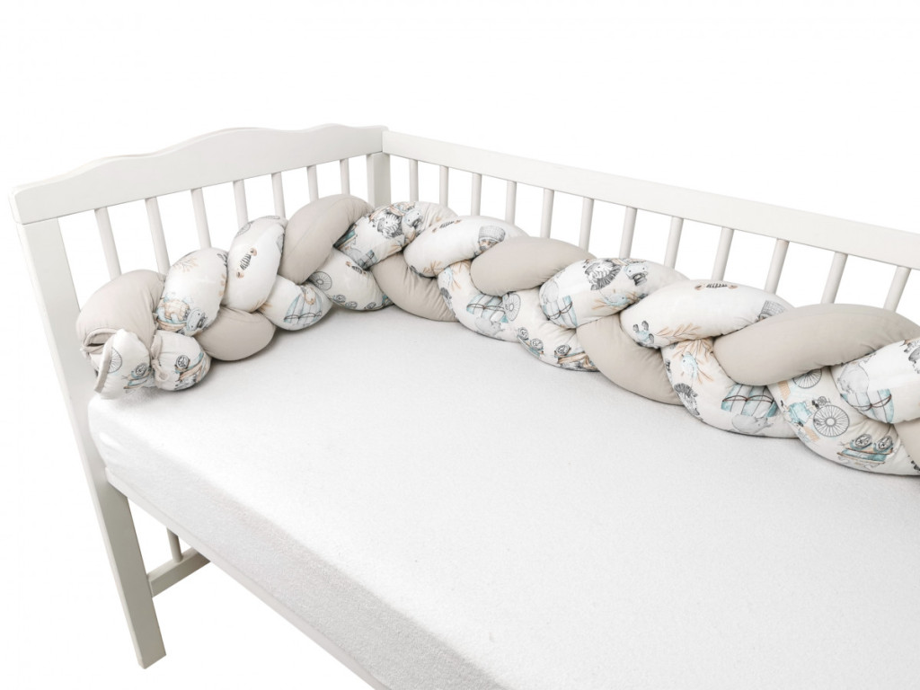 Baby Shop prémium fonott fejvédő kiságyba 250cm - Happy Zoo