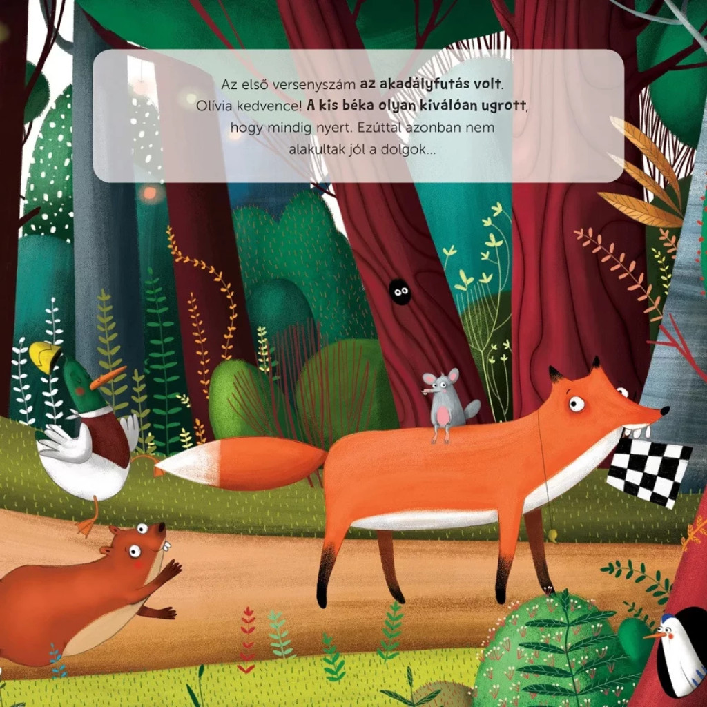 Az Ég veled, magány! Szia figyelmesség! című kötet az Érzelmek erdeje-sorozat része, amely egy kifejezetten az óvodás korosztály számára készült mesekönyvsorozat. Az izgalmas és tanulságos történetek könnyen érthetőek, és segítenek a kicsiknek felismerni és kezelni az érzelmeiket.A főszereplő, Olívia, a béka izgatottan készül a nagy nyári táborozásra, de váratlanul megsérül, így pihenőre kényszerül. Az események alakulása miatt úgy gondolja, hogy mindenki elfelejtkezett róla, és egyre magányosabbnak érzi magát. Ám vajon megszüntethető-e a magány, ha jobban odafigyelünk egymásra?A történet során Olívia és barátai olyan helyzetekkel találják szembe magukat, melyek az óvodások életében gyakran előfordulnak. A csoportdinamika, a barátság és az egymásra figyelés fontos témái kerülnek előtérbe. Az érzelmek kezelése és a mások iránti figyelem fontossága az óvodás korban kiemelten fontos, és ebben segítenek az Érzelmek erdeje-sorozat könyvei.A kirekesztés és az elfogadás témái szintén fontos szerepet játszanak a könyvben. Az óvodáskorú gyerekek gyakran találkoznak olyan helyzetekkel, amikor kirekesztve vagy elhanyagolva érzik magukat, és az ilyen érzések kezelése nagyon fontos az érzelmi fejlődés szempontjából.Az óvodás korban gyakran előfordulnak viselkedési problémák, melyek mögött gyakran az érzelmi nehézségek állnak. Az Ég veled, magány! Szia figyelmesség! és az Érzelmek erdeje-sorozat többi kötete segít megérteni ezeket a problémákat és megoldási lehetőségeket kínál azokra.A meseterápia nagyszerű lehetőség az érzelmi fejlődés támogatására az óvodás korban. Az Érzelmek erdeje-sorozat könnyen hozzáférhető és szórakoztató olvasmányokat nyújt, miközben segít az érzelmek felismerésében, kezelésében és megértésében.