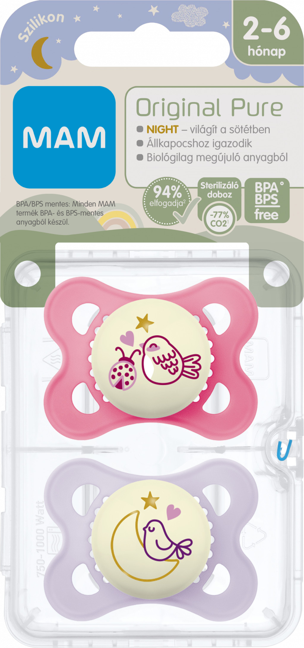 Természetesen biztonságos, tartós, biológiailag megújuló anyagból. A nagy méretű levegőnyílásoknak és a belső felén kialakított egyedülálló MAM mélyedéseknek köszönhetően kíméli a bőrt.