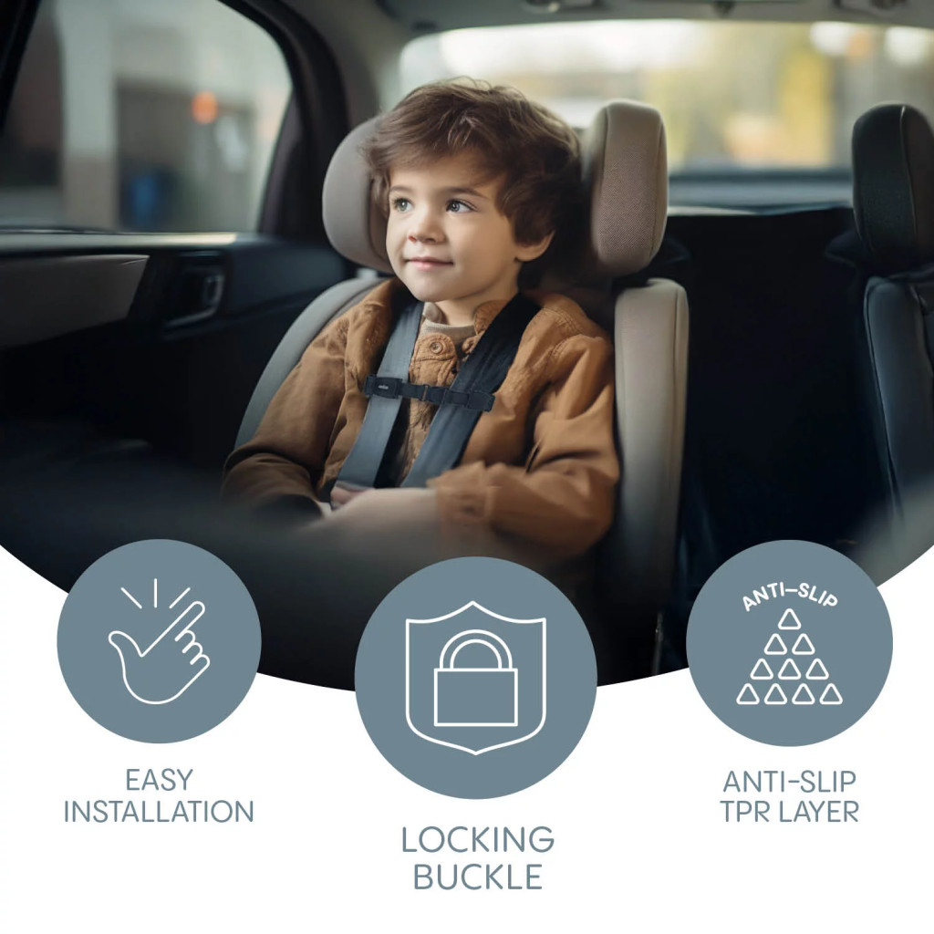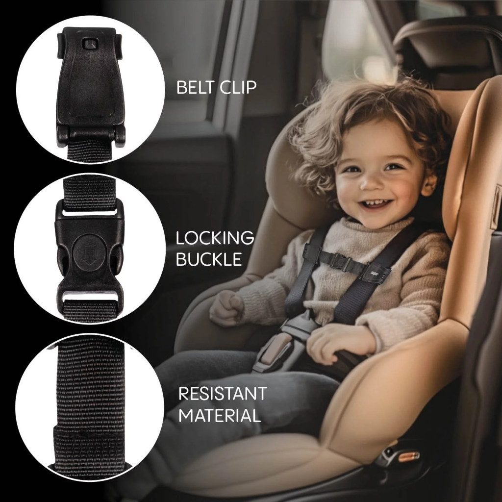 A gyerekülés biztonsági övzára megakadályozza a nem kívánt kioldást utazás közben. Egyszerű telepítés, csúszásmentes réteg és tartós kialakítás a maximális megbízhatóság érdekében.