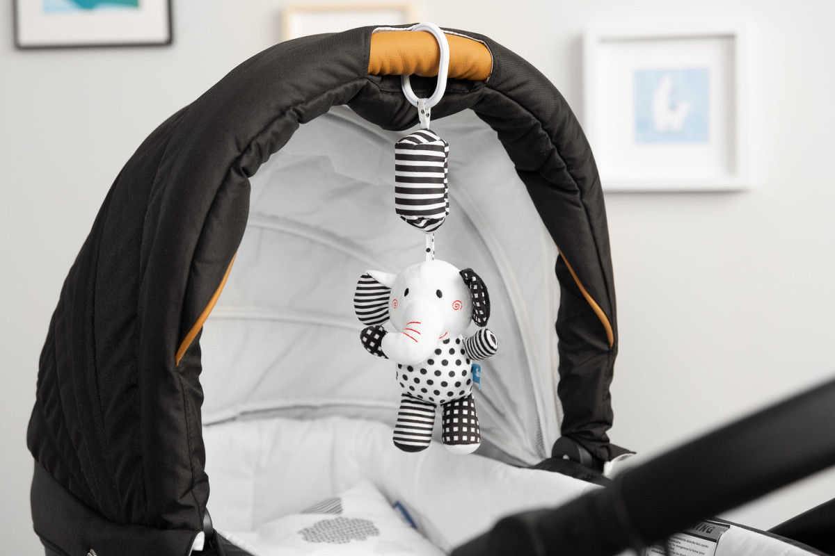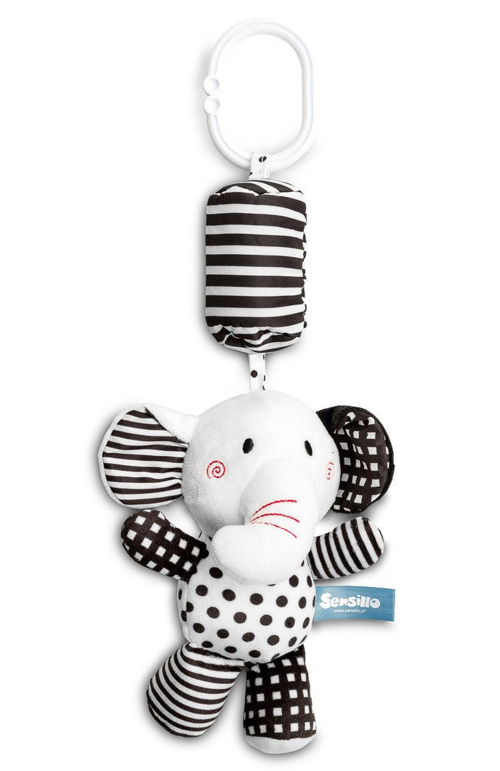 Sensillo plüss csörgő babakocsira fekete/fehér elefánt