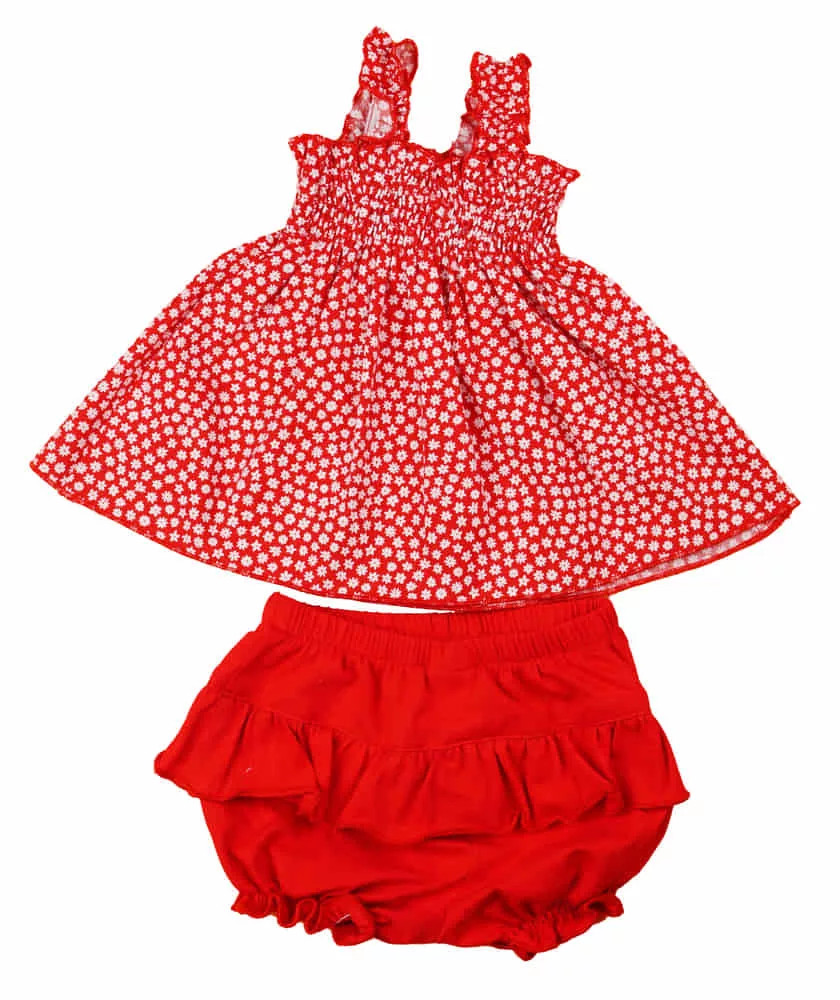 Ellenállhatatlun cuki ez a kétrészes nyári baba szett, melyet igazi forró nyári napokra ajánlunk. Fodros rövidnadrágja gumis derék és szár megoldással készült, ami tökéletesen kényelmes és biztonságban tartja a pelust. Felső része hosszított, tunika fazonú, vékony pamutvászonból készült, aminek van tartása és kényelmes viselet meleg időben is. Mellrészénél gumírozott és vállpántja is gumis megoldással készült. Könnyen kezelhető, szín- és formatartó, bababarát pamut anyaból készült.
