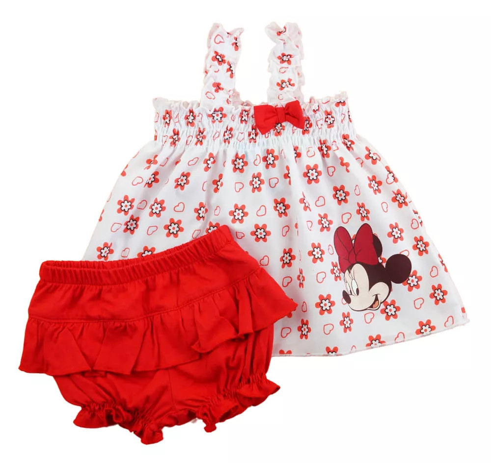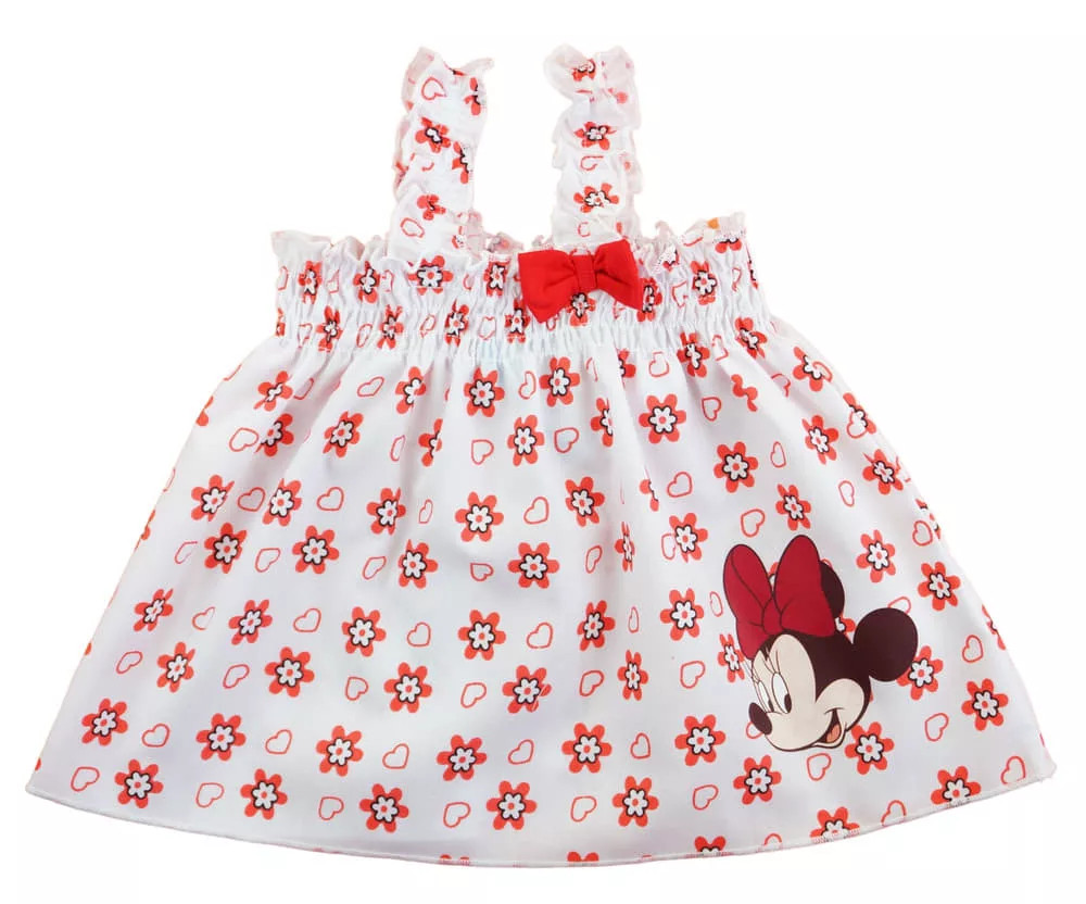 2 részes kislány nyári szett rövidnadrággal, tunikával Minnie egér mintával piros (56)