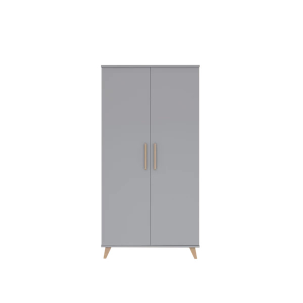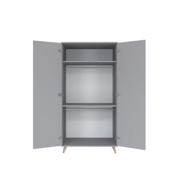 A kétosztású szekrény ideális választás, hiszen bőséges helyet biztosít kisbabád első holmijainak. Tökéletesen kombinálható a bútorcsalád többi darabjával, így könnyedén kialakítható egy olyan gyerekszoba, amit a kicsik soha nem unnak meg. A szekrény belső tere 2 db fix polcból és további 2 db akasztó rúddal került kiegészítésre. A szekrény stabil, kecses lábainak köszönhetően könnyedén lehet takarítani alatta.