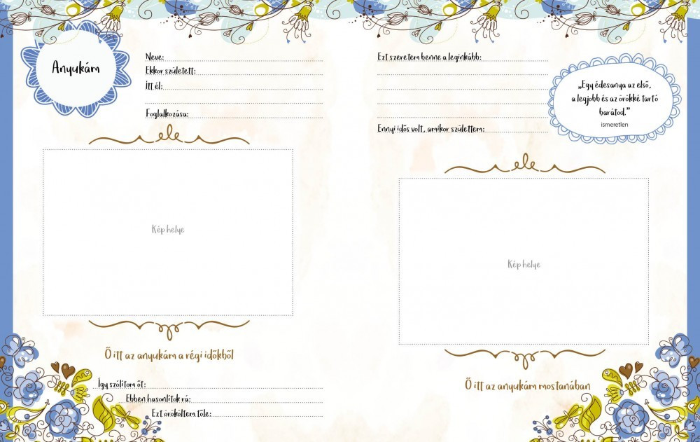 Ebben a gyönyörű emlékkönyvben megrajzolhatod a családfádat és feljegyezheted a családod történetének legfontosabb állomásait.
