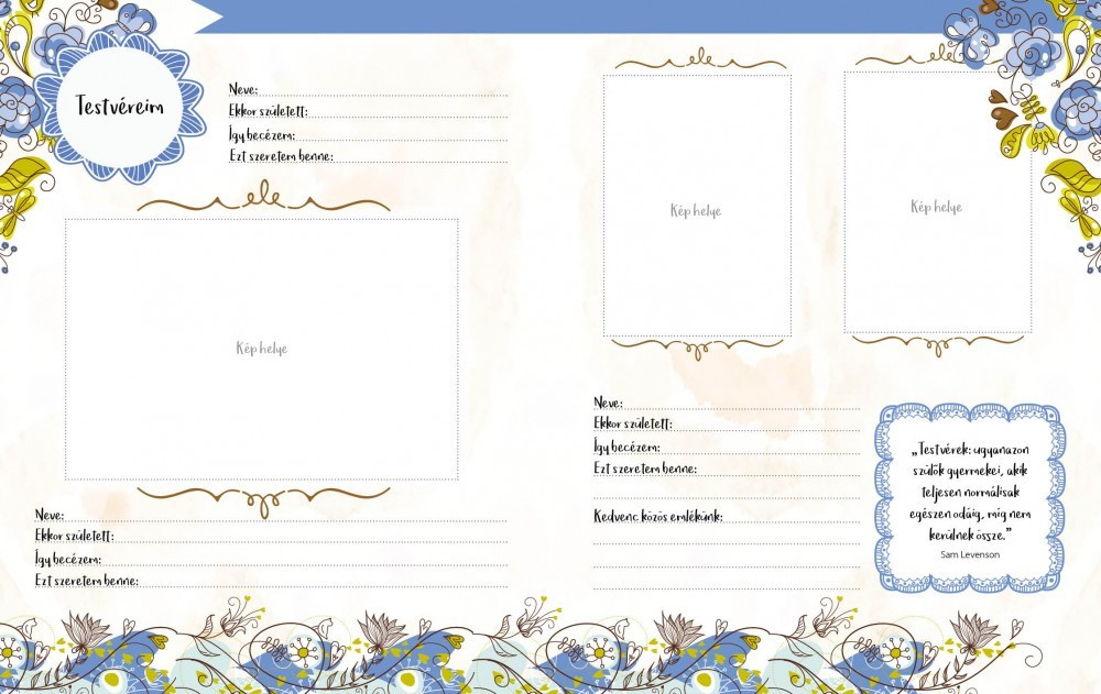 Őrízd meg a legkevesebb emlékeket a testvéreddel, a szüleiddel,nagyszüleiddel! Írd össze, milyen népes a családotok,ne feledkezz meg a nagybácsikról,nagynénikről,keresztszülőkről és unokatestvérekről sem!