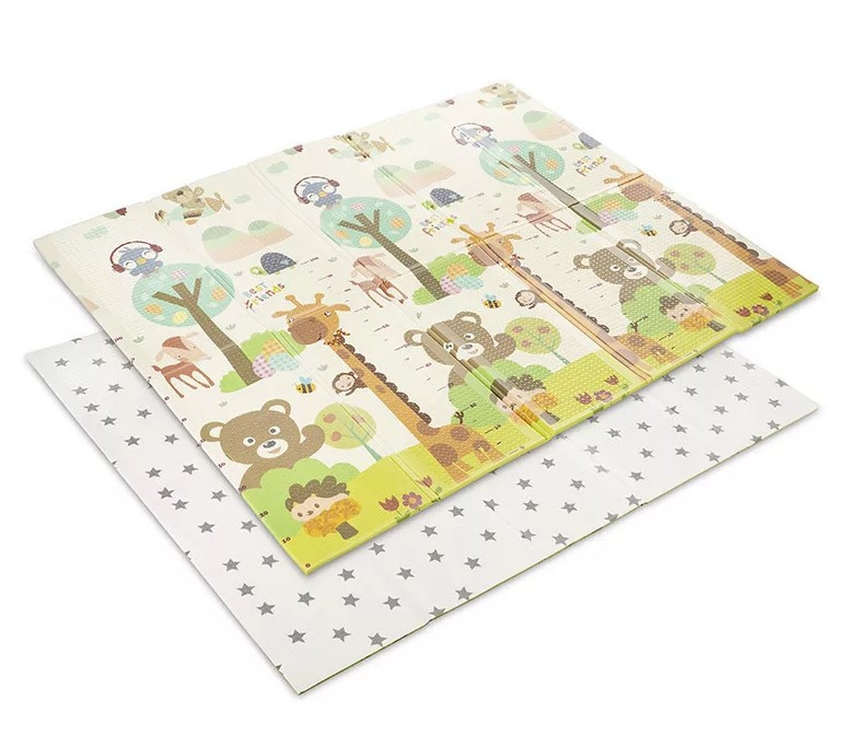 Lorelli Összehajtható játszószőnyeg 180x200cm 2 oldala különböző mintákkal díszített.