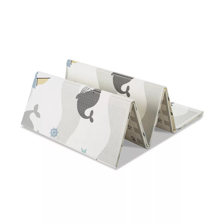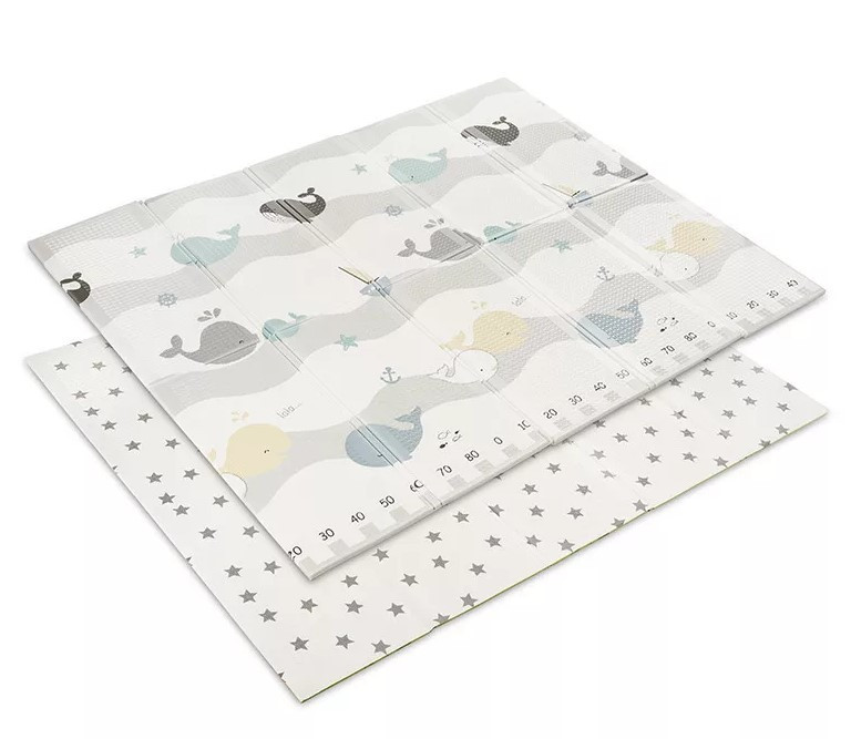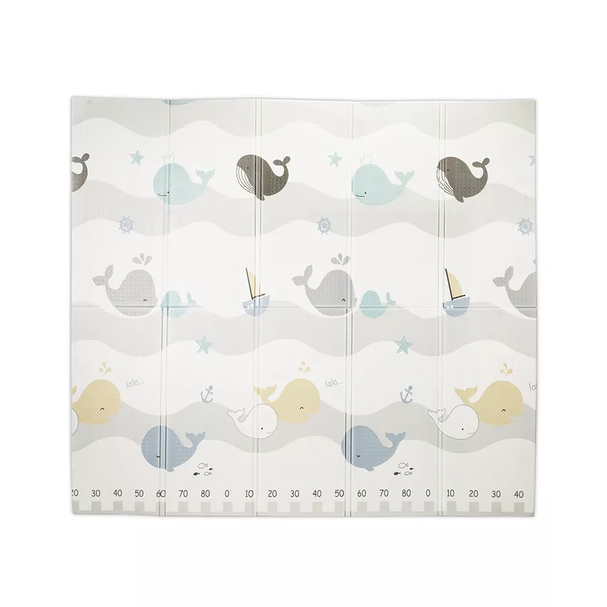 Lorelli Összehajtható játszószőnyeg 180x200cm 2 oldala különböző mintákkal díszített.